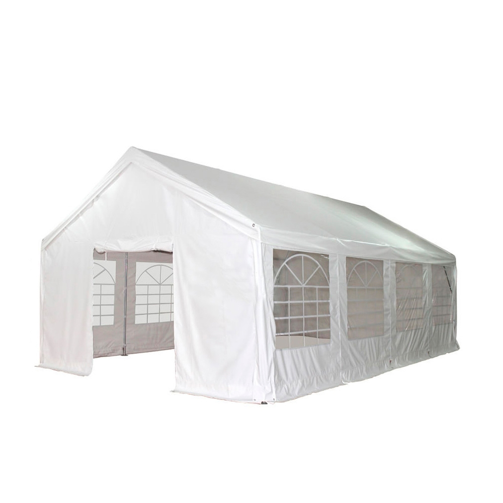 La structure en acier tubulaire de 50mm est renforcé aux 4 angles par des tubes renforcés de 76mm. Le toit et le cotés sont en PVC 520gr/m². Les tentes sont ainsi extrèmement solide et peuvent être utilisées même dans les pire conditions de vent. Le système de tension des bâches permet d'avoir une parfaite étanchéité à l'air du chapiteau et permet ainsi une utilisation en toute saison.